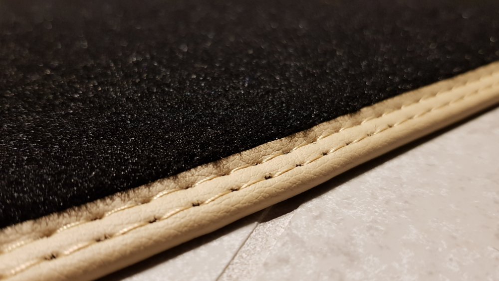 La moquette est très épaisse (bien plus que ceux que j'ai en ce moment, et qui semblent d'origine :?: ), les bordures en simili sont bien finies, le surpiquage est propre.