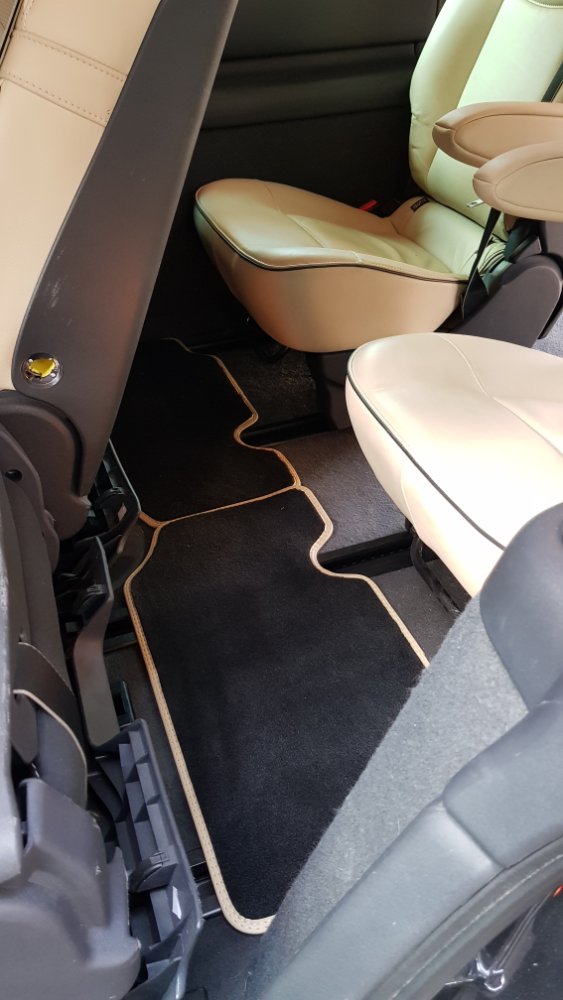 A l'arrière, c'est un peu différent, que ce soit au rang 1 (tapis en une seule partie, qui prend toute la largeur du véhicule), ou au rang 3 (tapis en 2 parties).
