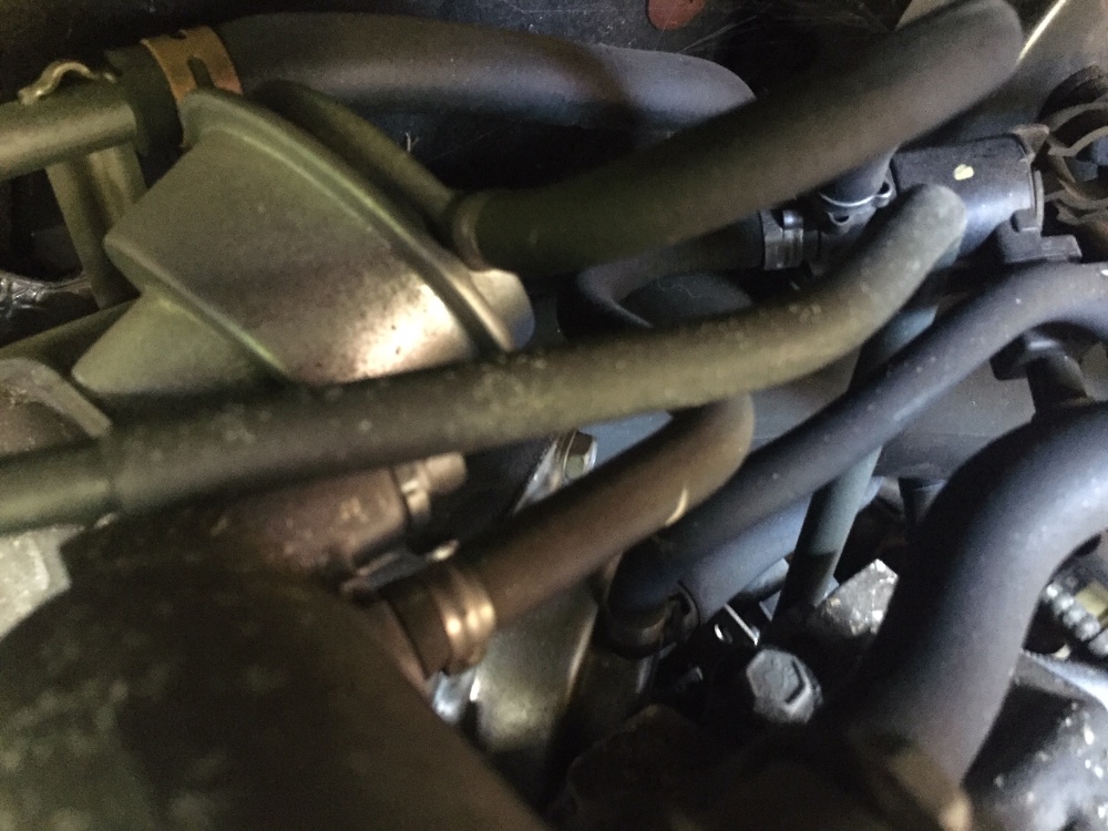 - où se branche la durite sur "le milieu" de la pipe d'admission (donc encore plus à gauche dans la photo et cachée par la sortie de turbo en plastoc), à côté du capteur de pression de suralimentation.