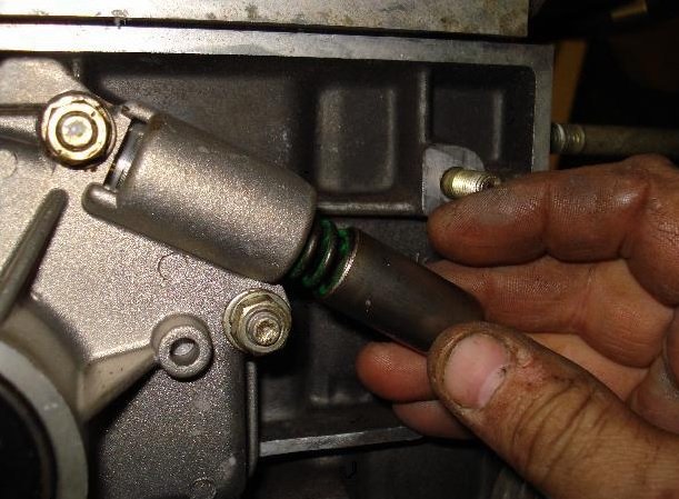 Je viens de découvrir qu'il existait 2 modèles de galet tendeur pour les J6R/J7R, malheureusement celui que j'ai reçu avec mon kit distri a besoin du piston tendeur qui se monte sur la pompe à eau : Je ne l'avais pas sur mon moteur car le galet actuel utilise un autre système: Est-ce que qqn aurait ce piston en stock avec le ressort ?