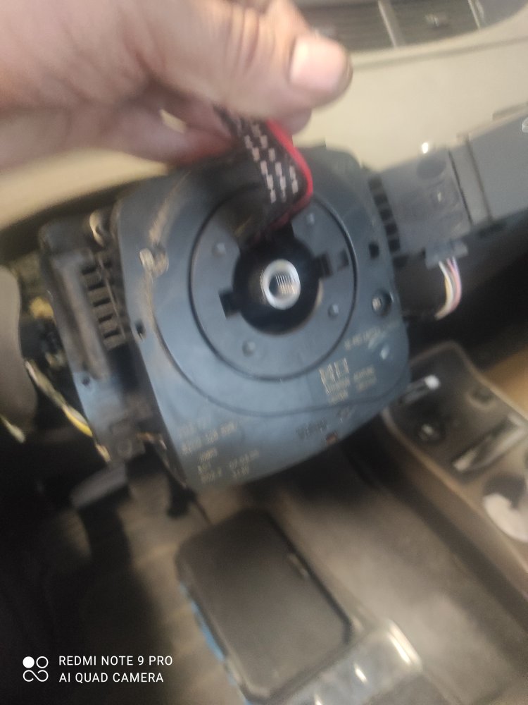 Second point : le contacteur tournant, ici aussi, la liaison s'effectue à l'aide de lames souples qui viennent frotter deux pistes en métal. Les cosses du klaxon sont placées à l'extérieur du comodo, bien vérifier qu'elles ne se touchent pas.