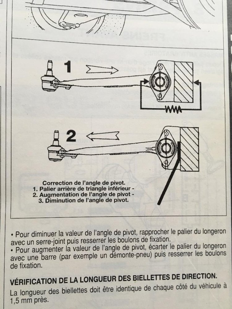 Même si l'angle de pivot et de carrossage ne sont pas ou peu réglables,