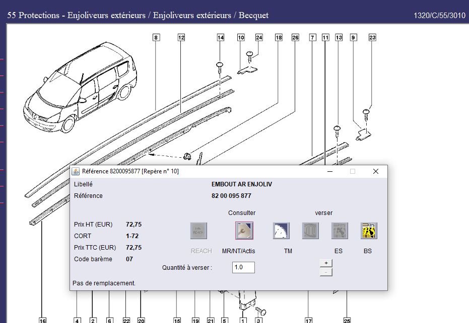 j'ai regarder dans Dialogys 4.9 pour trouver cette piece mais je n'ai pas été capable de saisir le type de mon vehicule (JKFJ6, case D2 sur la carte grise) dans dialogys