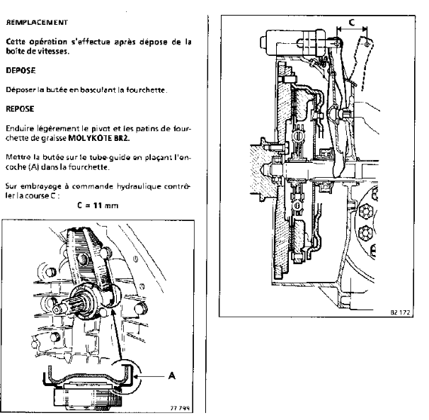 Parfois tu peux aussi avoir un "cran" qui verrouille la butée en place (vu sur Fiesta 3)
