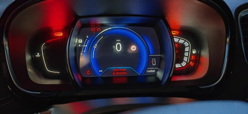 Il y a eu un message (un truc de direction je ne m'en souviens plus exactement) au tdb qui s'est affiché ! Premier reflexe, je verrouille et déverrouille, j'appuie sur Start et ça redémarre, ouf. (mais j'ai du reregler les rétroviseurs qui avaient perdu leur configuration) Je me dis que j'ai du faire quelque chose qui n'allait pas. Bref je n'en tiens pas compte.