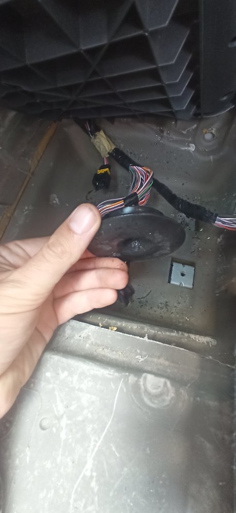 Pour éviter que le calculateur de clim se retrouve dans l'eau, j'ai enlevé le bouchon qui est sous le tapis du calculateur.
