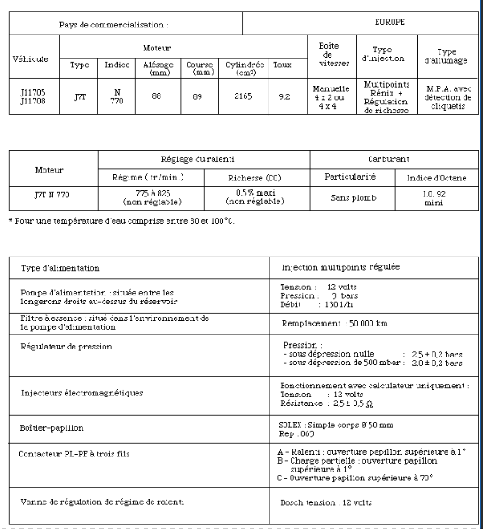 La sonde lambda n'est que sur les J7T moteur 2.2l ,si tu as un J7R