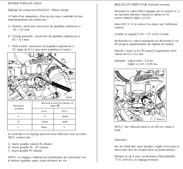 *Le régime n'est pas stable lorsque je débraye (elle démarre bien à chaud ou à froid, tient bien le ralenti, mais si je débraye par ex à 1500 trs, le régime tombe, et elle cale).