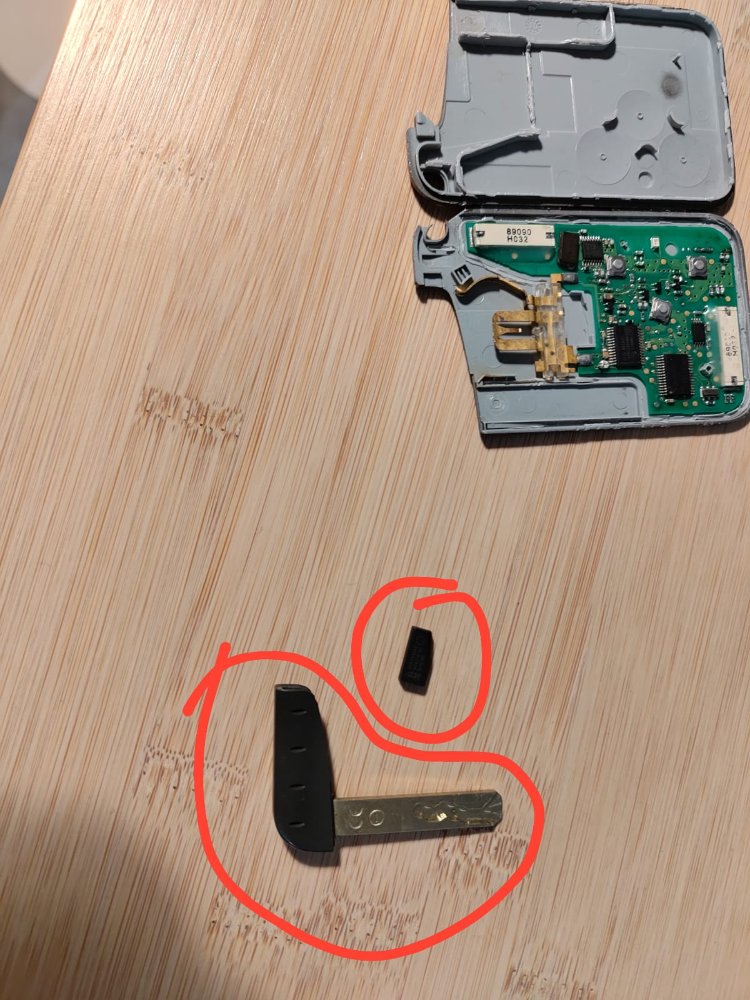 Je l'ai envoyé chez le telecomandier et il m'a dit qu'il pouvait rien faire. Mais j'ai quand même récupérer la carte pour la décortiquer, ce qui m'a permis de récupérer la clé physique pour faire une ouverture mécanique de la porte conducteur ainsi que la tout petite pillule noir qui sert de transpondeur (attention, ne pas avaler