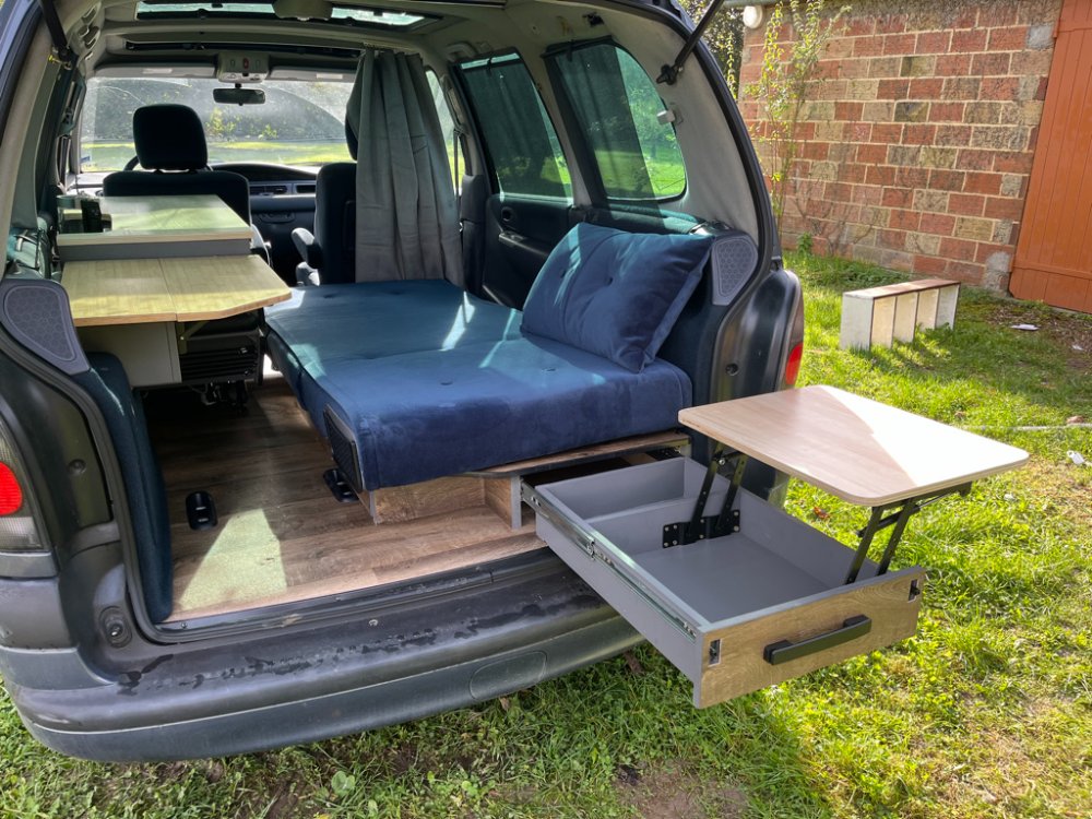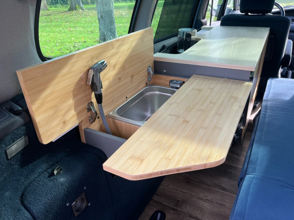 Merci Henri13. Il faut aussi avoir du temps, et du temps car c'est très chronophage. Faire tout rentrer dans un Espace 3 n'est pas facile. De un c'est pas si grand et de deux, l'espace 3 est rempli de courbes ce qui complique la pose de meuble en bois. C'est presque au centimètre près. Les 3 contraintes de l'installation étaient d'être légère, solide et bien fixée. J'ai utilisé la base d'un fauteuil passager pour y boulonner le meuble qui est en CP de 10mm.