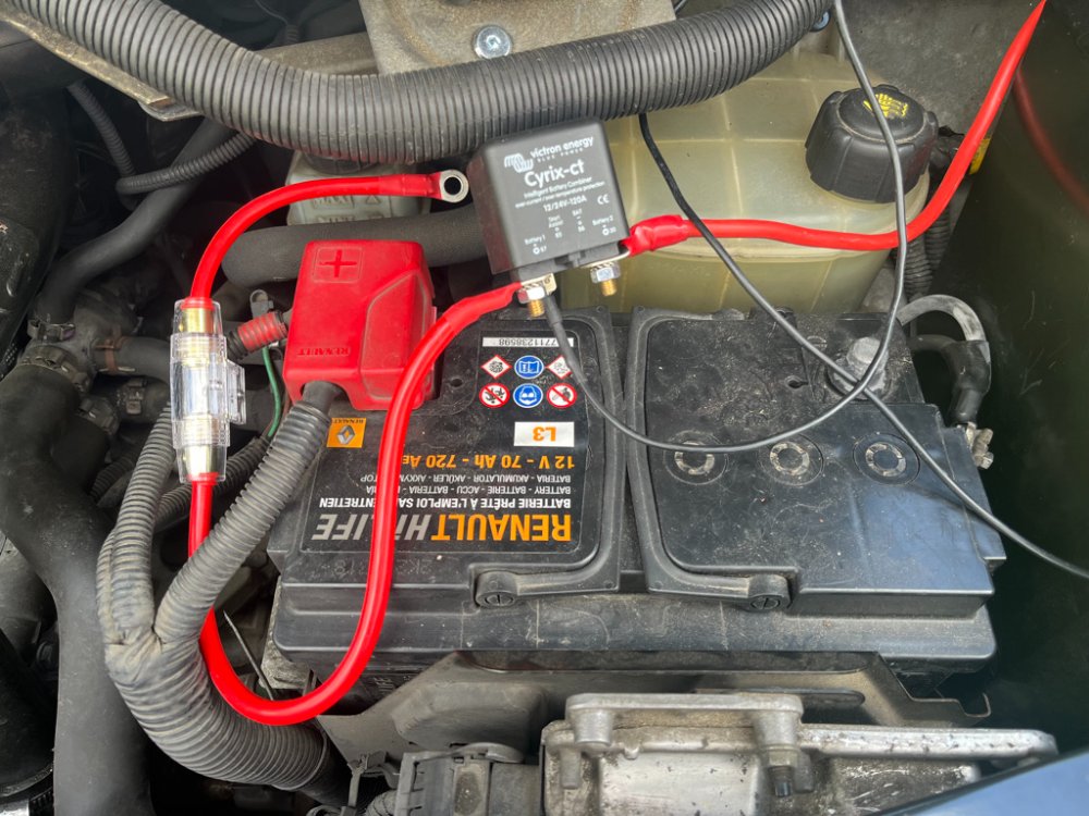 Effectivement, j'en ai un avec une puissance de 20Ah + un coupleur/séparateur + un panneau photovoltaïque 160w. Il fait trop mauvais en ce moment pour que je puisse en faire l'installation mais dès que mon schéma élec sera finalisé et le temps plus clément je ferais un topo en images de l'installation.