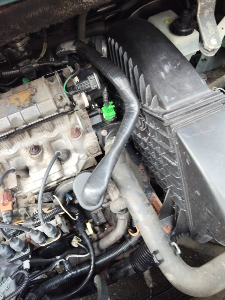 J'ai aussi rafistoler la durite supérieure du reniflard d'huile, un rafistolage pas très orthodoxe , mais j'espère qui fera l'affaire pour le CT :lol: