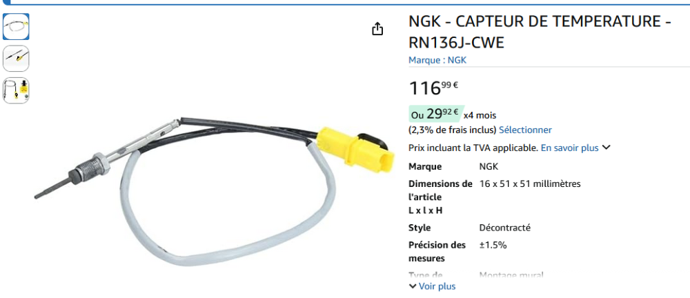 Bonsoir,Yacine51350 a écrit : 22 nov. 2025, 22:34 Capteur temp gaz d’échappement avec un fap,avec main d œuvre,tu vas être dans les 1300/1500€ à la louche…