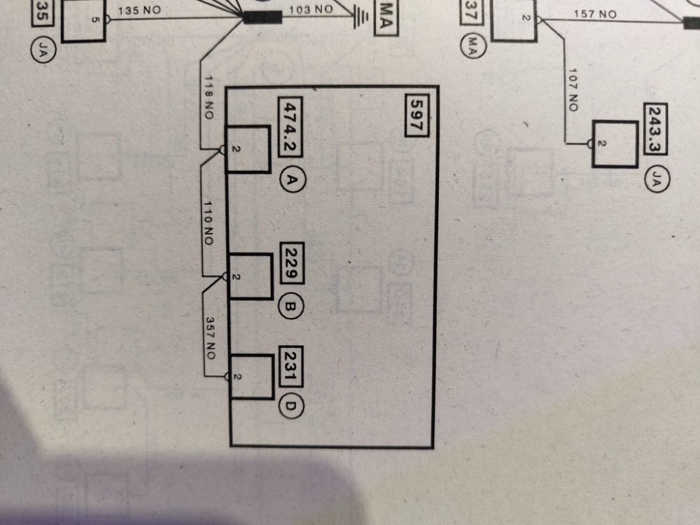 J'ai repérer ce boitier sur certains schéma. Il est représenté comme le "597". Il y a la couleur des fils qui sont notés. Essaie déjà de relier le boitier avec ces schémas et dis moi ensuite ce qu'il te manque, ca sera plus simple pour moi de chercher. Pour savoir l'emplacement des relais et fusibles, regarde la photo que je t'ai envoyé hier, il y a normalement une correspondance avec les schémas. Bon courage !