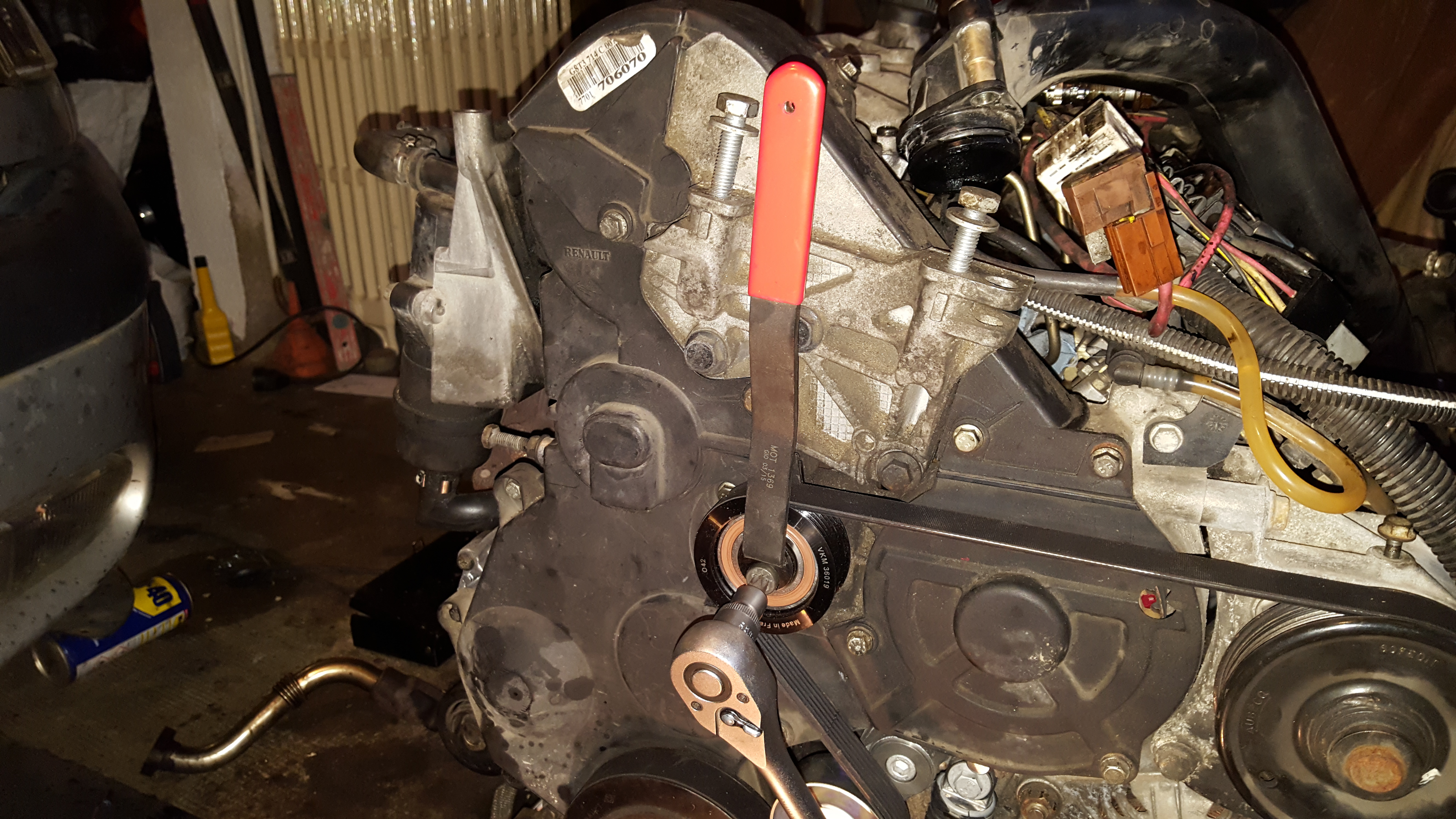 Tension de la courroie avec l outil qui va bien et la pige qui ce libéré quand la tension est bonne