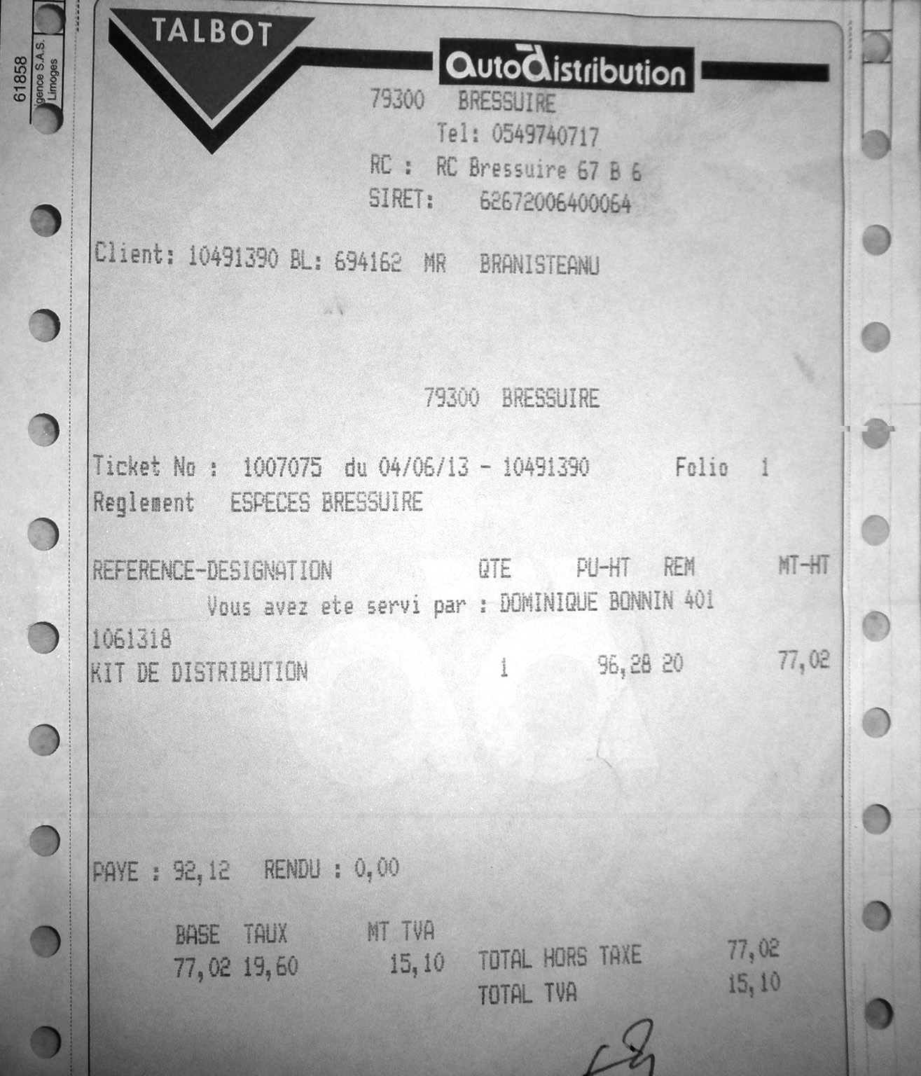 j'ai demandé à mon vendeur le rapport de contre-visite, les documents concernant la distrib et d'autres photos. Il n'a pas hésité un seul instant et m'a envoyé aussitôt une bonne quinzaine de photos +le doc de contre visite + sa facture de kit de distribution