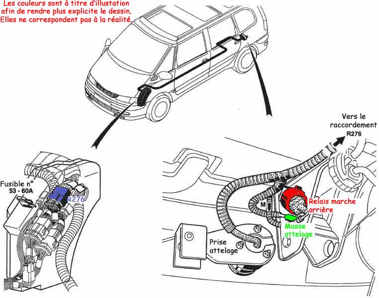 Je suis passé chez Renault et j'ai discuté avec un mécano, il a été étonné que je lui parle d'un faisceau spécifique, il ne connaissait pas le connecteur gris de la boite çà fusible et m'a dit qu'ils se branchaient toujours sur les feux arrières, même sur les modèle récents…il ne connait donc pas le passage de câble.