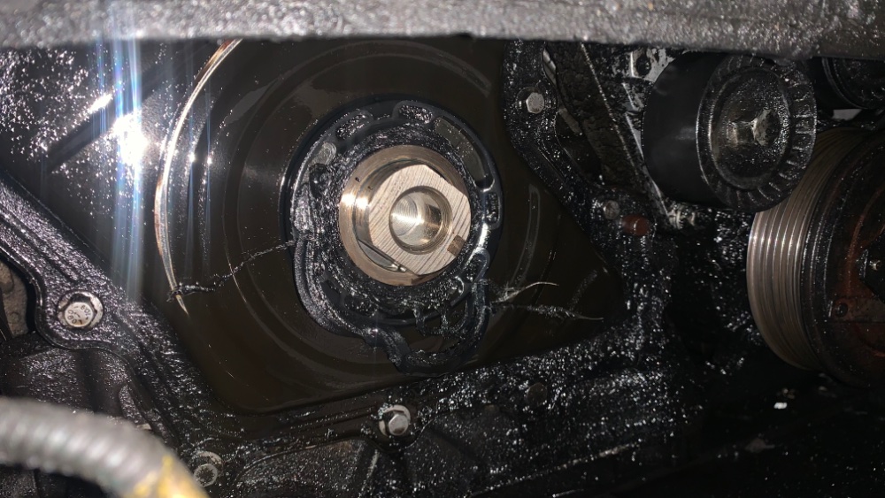 En parallèle je me suis attaqué à la clim rechargée l'été dernier qui était de nouveau totalement vide. Le tirage au vide n'a rien remonté d'anormal cependant à l'azote la fuite n'a pas été très compliquée à localiser, dès l'ouverture de la bouteille un grand psssshhhhtttt s'est fait entendre au niveau du... compresseur dont le carter est apparement fendu !