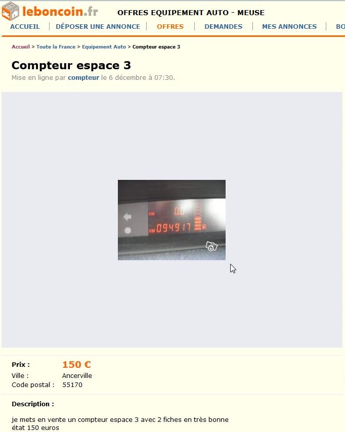 je mets en vente un compteur espace 3 avec 2 fiches en très bonne état 150 euros