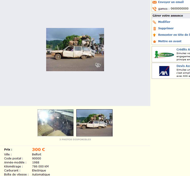 l'annonceur c'est clair un cretin, vu q'il a fait use du nom de la 505, qui, c'est une de les voittures qui a fait histoire et a soulevé la réputation de l'industrie automobile française...