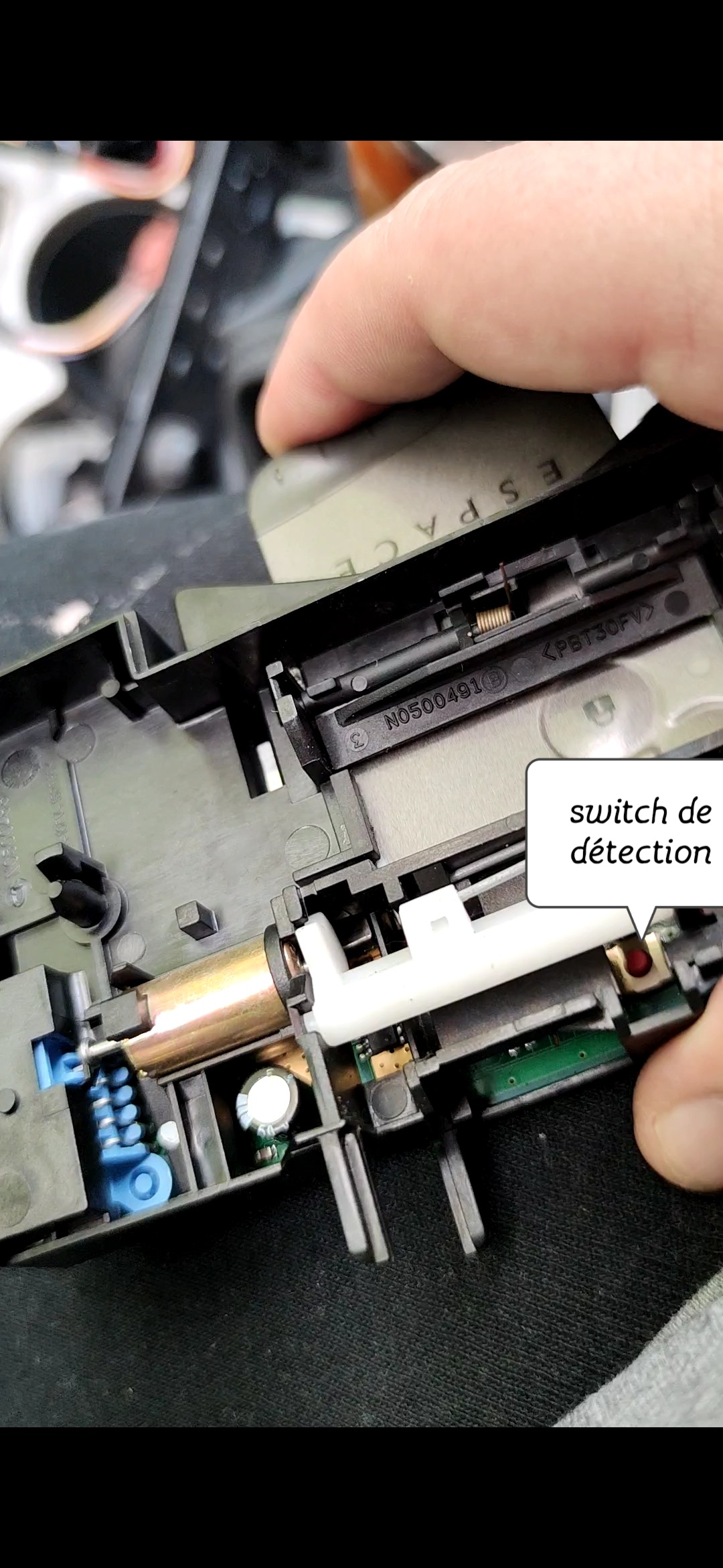 Dans mon cas, la pièce en plastique blanc était déjà en position verrouillée. Ce qui fait que la carte devait tant bien que mal se faufiler entre la pièce en plastique blanc et le switch de détection de la carte afin d'être détectée...