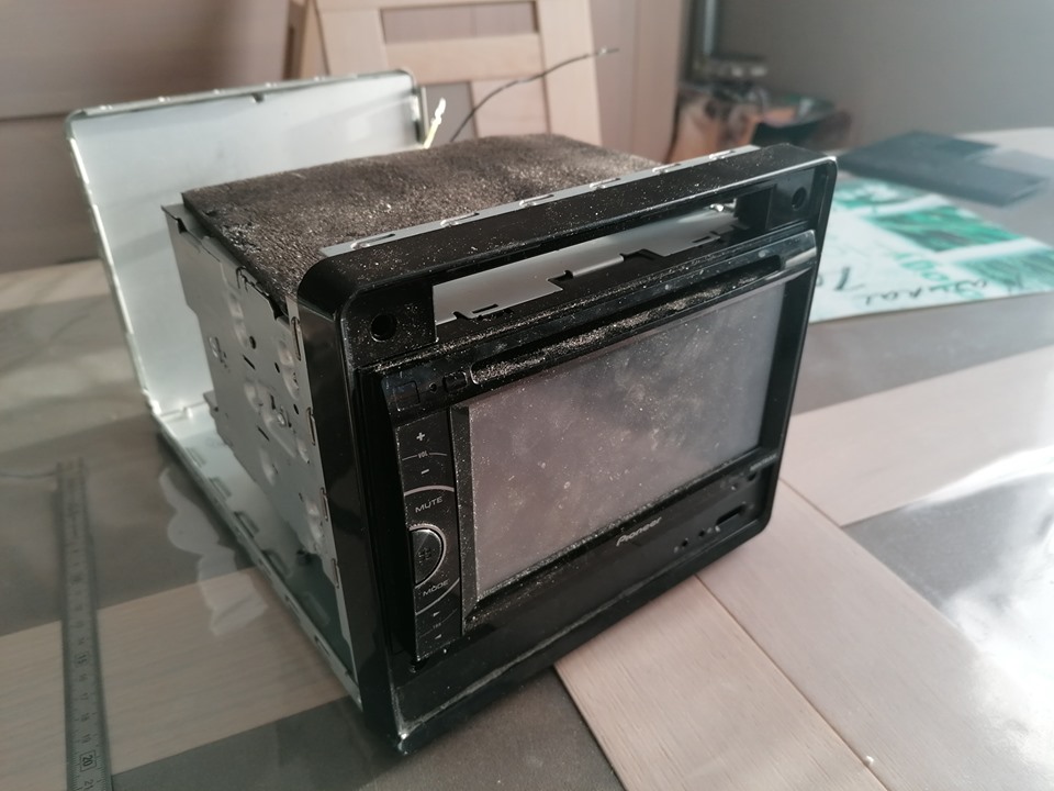 Radio pour l'atelier avec un double din pioneer et des hp de home cinéma.