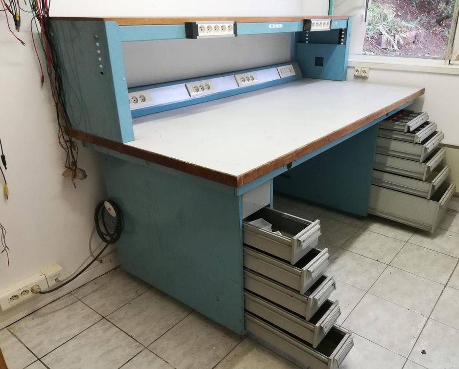 Avant ponçage, peinture, mise en place des roulettes et pose des tiroirs :