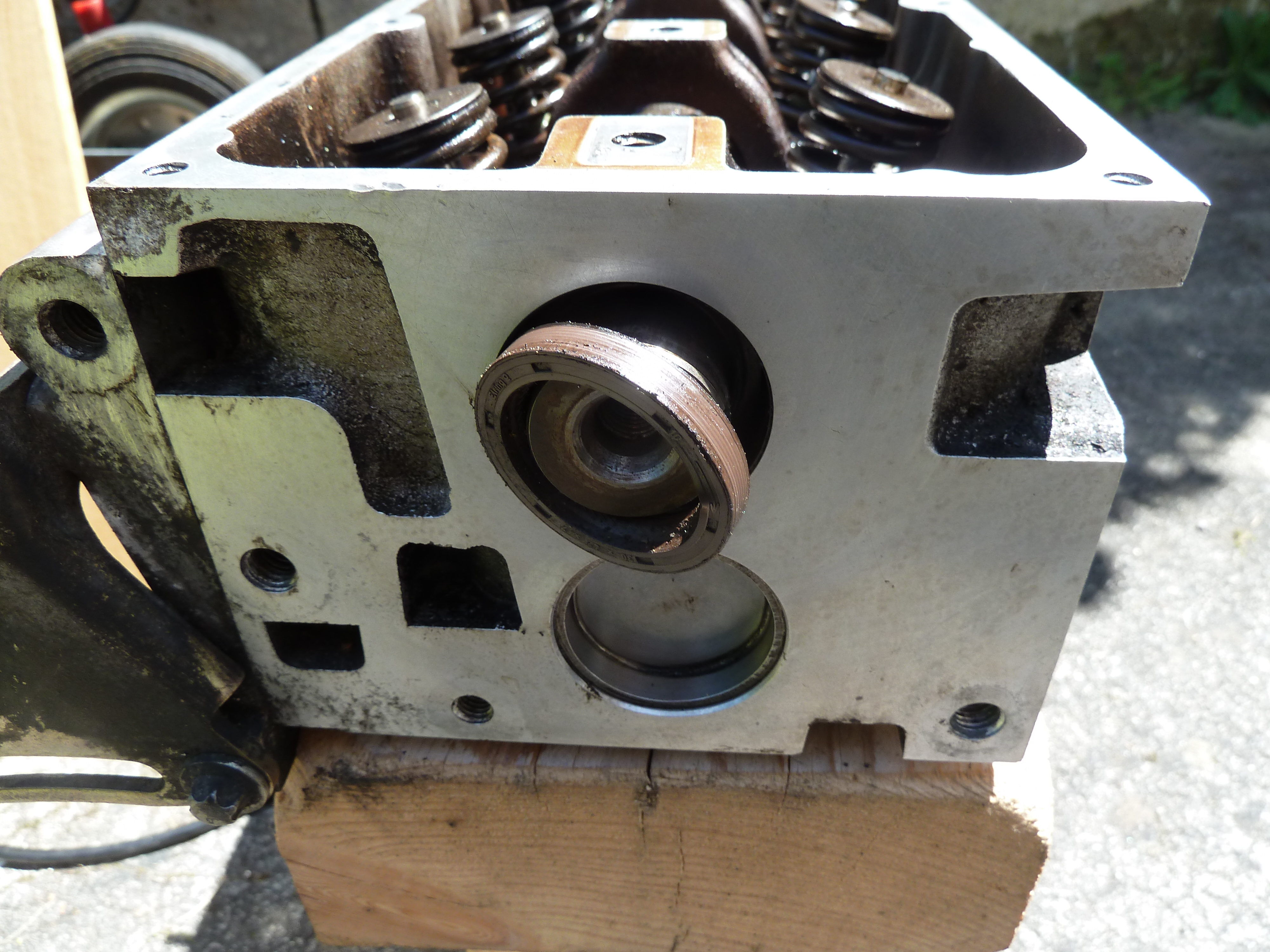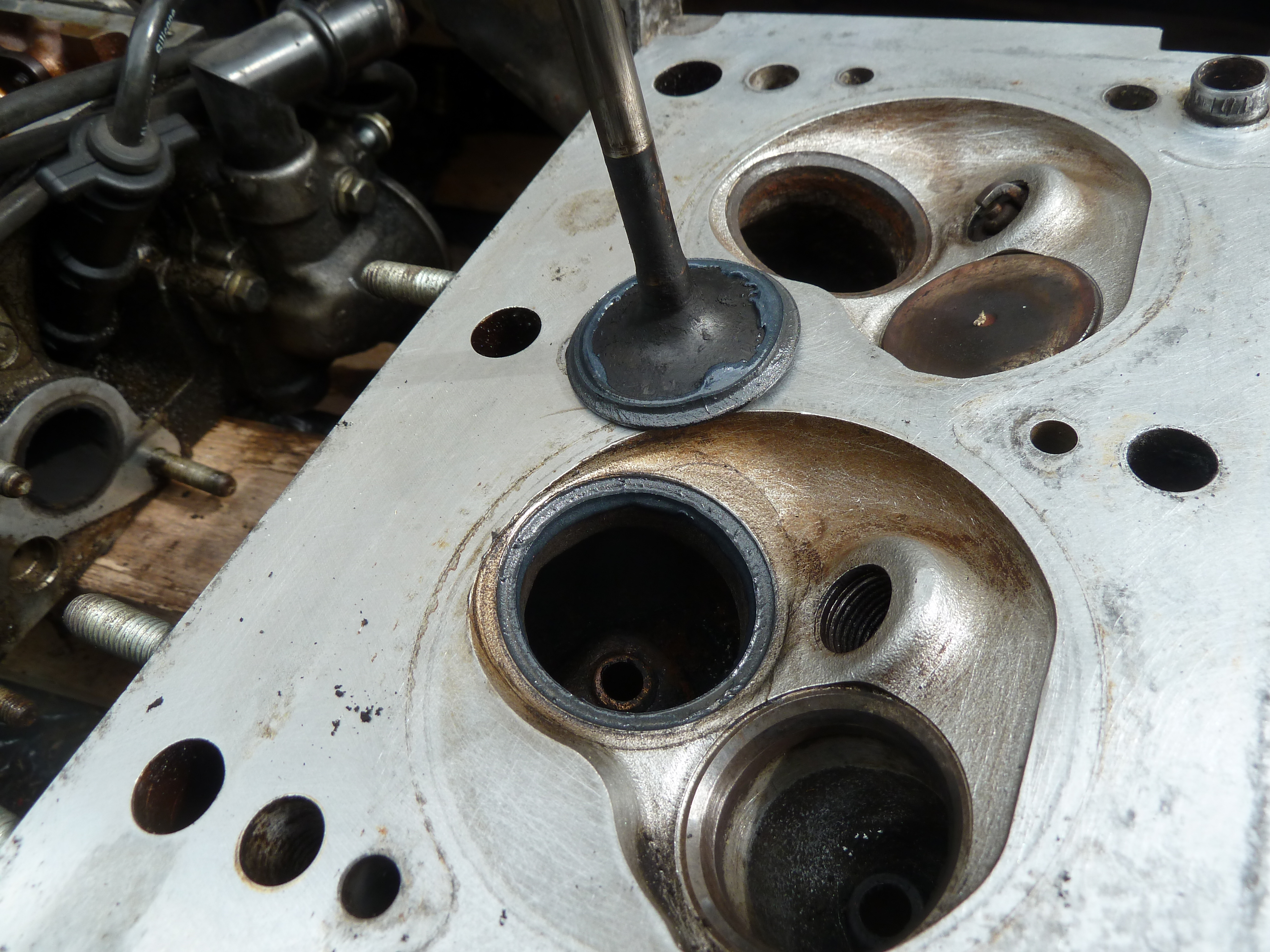 Puis mise en place de 4 des 8 joins de queues de soupapes et remontage des ressorts!