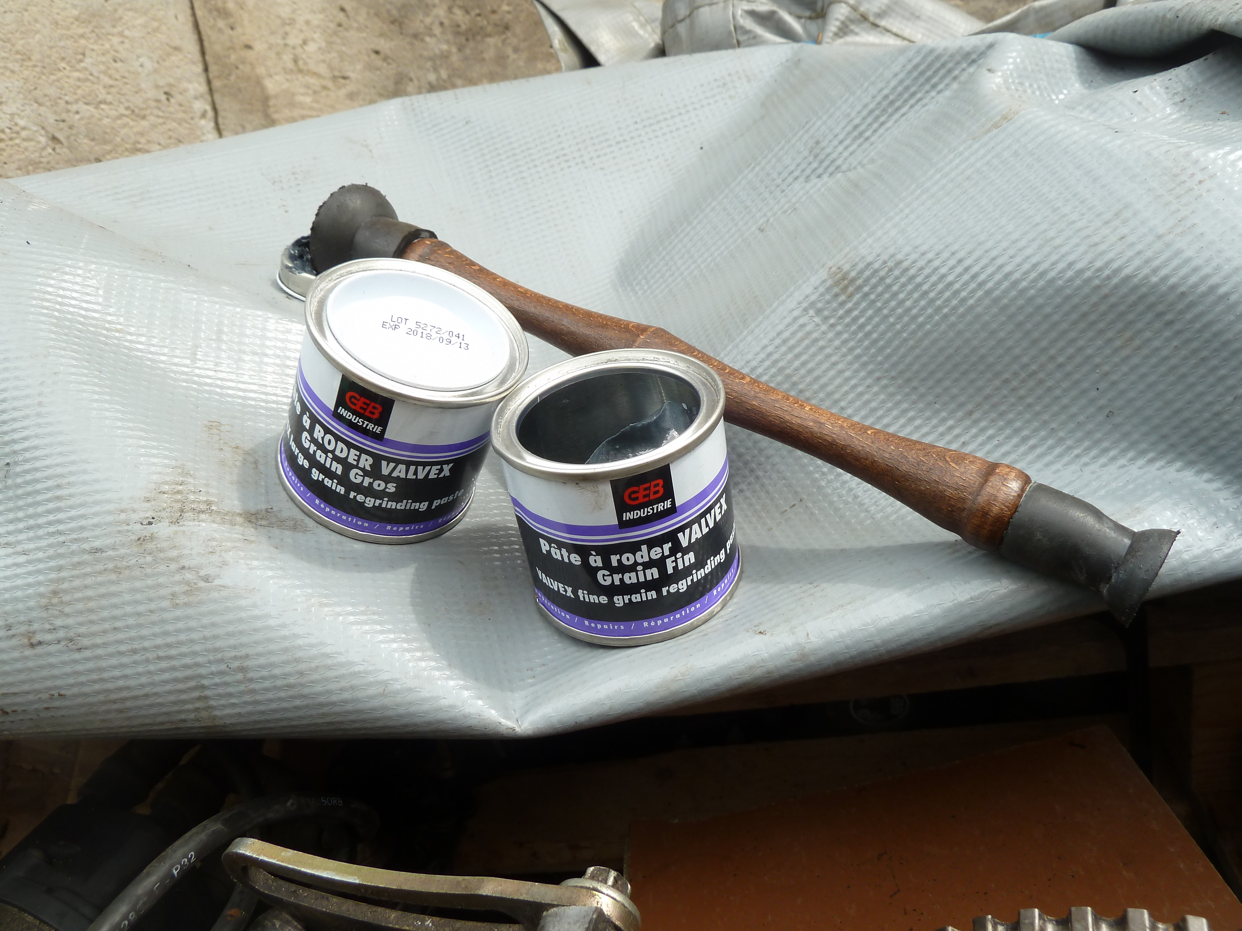Toujours commencer par le gros grain et bien lubrifier le guide au préalable (attentionsurtout pas d'éclaboussure de pâte a roder sur le guide de soupape)