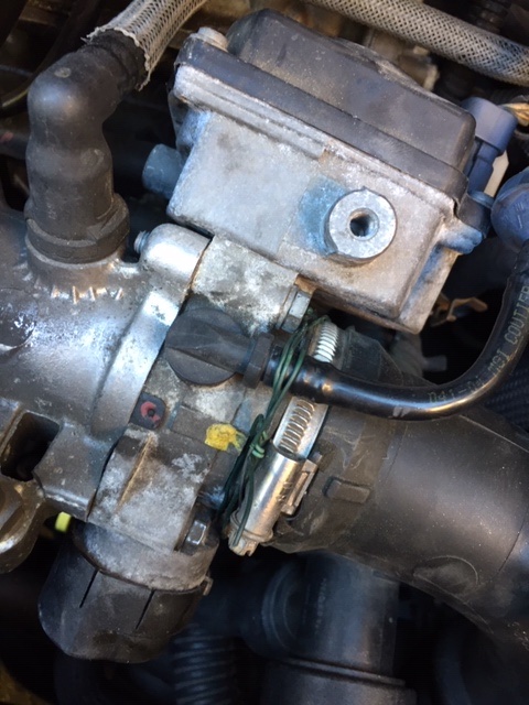 Dès que je suis rentré j'ouvre le capot et je vois que la durite d'air sur le boîtier papillon est débranchée. Une patte de fixation est absente, passée dans le moteur, une autre est cassée. J'ai décrassé un peu le boîtier papillon, il est encore sale mais je n'avais la temps de faire plus donc j'en arraché la patte tordue et remonté le tout en bricolant un peu, puis allé à la fac. Ce petit nettoyage lui a vraiment donné la pèche!