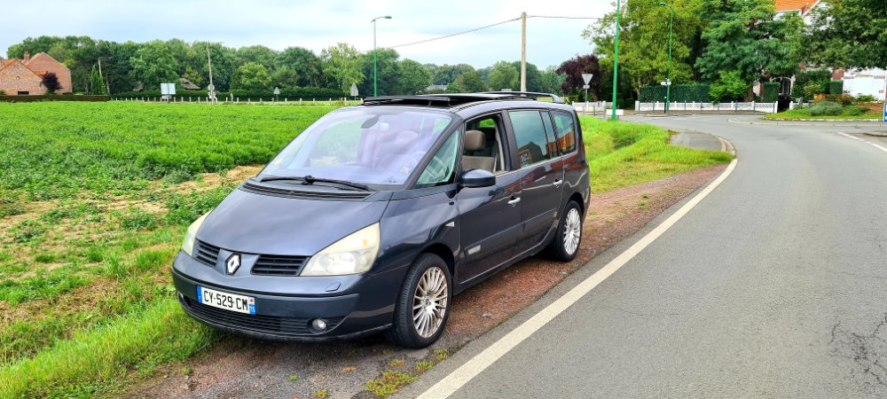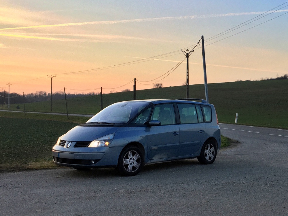 L'ancien : Espace 4 2,0T 165chx, 2004, 7 places, finition privilège, acheté en 2012 à 65.000km, revendu pour cause de ZFE à venir pour une nouvelle vie en 2022 à 220.000km, un régal de fiabilité, simplement grand, confortable, ultra agréable à conduire partout.
