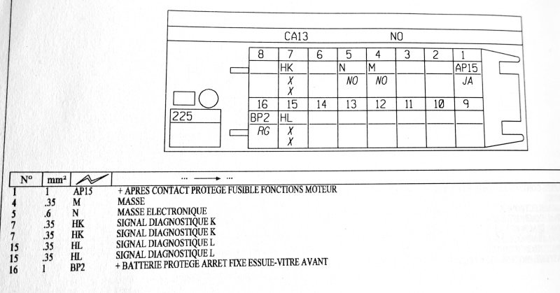 Le câblage des prises OBD est resté le même quelque soit l'année et la motorisation. J'ai regardé hier soir les NT des multiplexés.