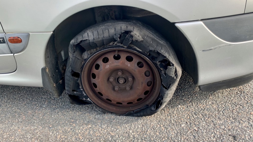 Je m'en sors bien, tombé en panne juste au niveau d'une bretelle d'entrée j'ai pu me rabattre rapidement sur la BAU et faire une petite marche arrière pour installer la roue de secours en sécurité loin des voies. Lors de l'éclatement il est resté très stable et contrôlable, pas de quoi se faire peur, dans la bataille j'aurais seulement perdu l'enjoliveur qui a éclaté, aucun autre dégât par chance :