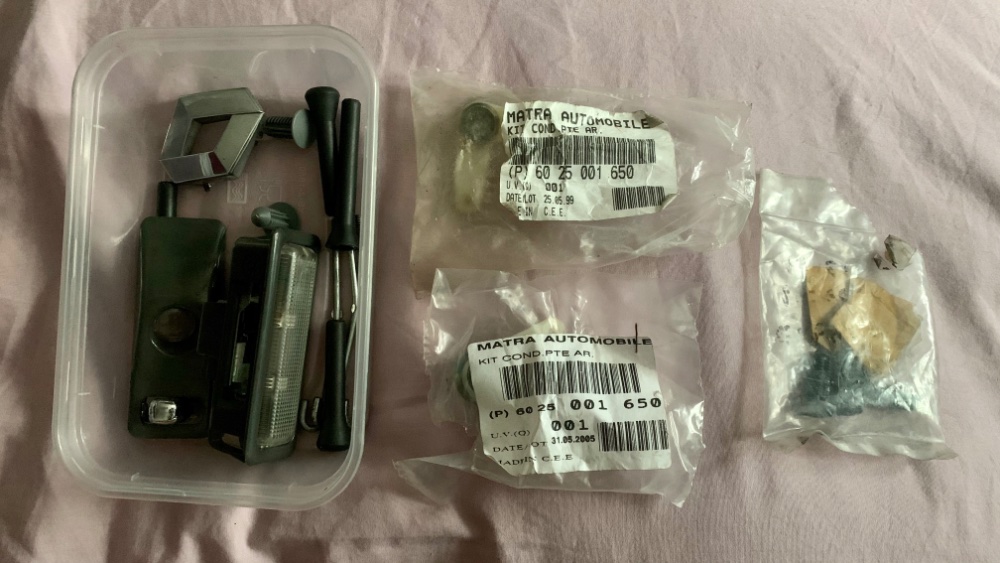 Il m'a également laissé des tupperwares remplis de petits plastiques, relais et divers boutons, un commodo, une poignée de porte extérieure... Je suis reparti le sourire jusqu'aux oreilles :