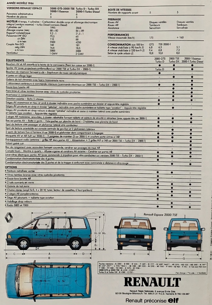 Modèle : [Espace I 2.0 carburateur]