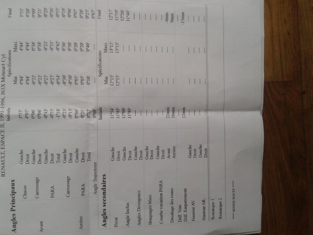 Alors voilà le rapport de géo qui me paume encore plus: notez que les valeurs de chasse ont été inversées G>D par rapport aux dernières mesures.