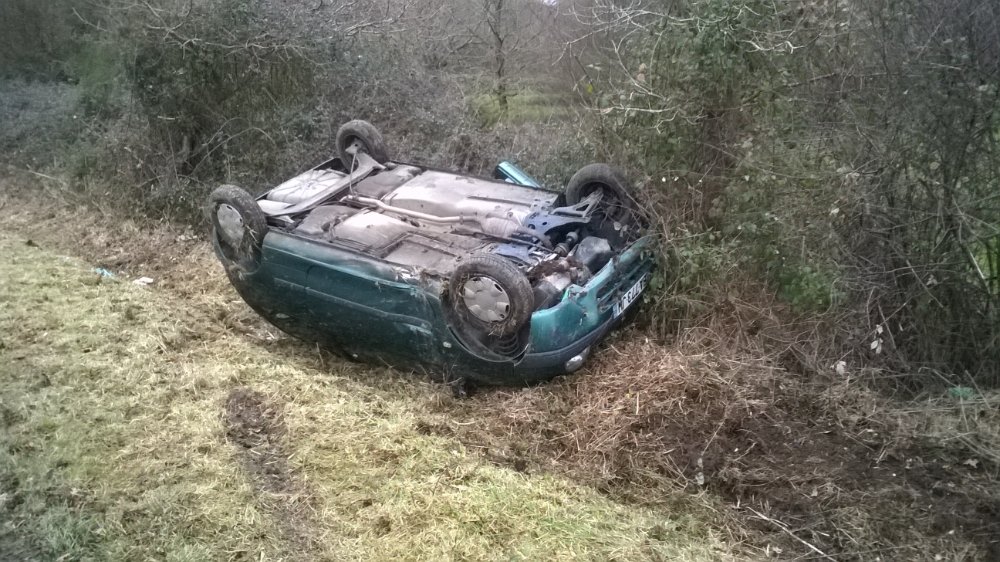 Remise sur ses roues, le poteau avait plié la caisse au milieu, donc épave, mais le moteur a démarré au premier coup de démarreur !