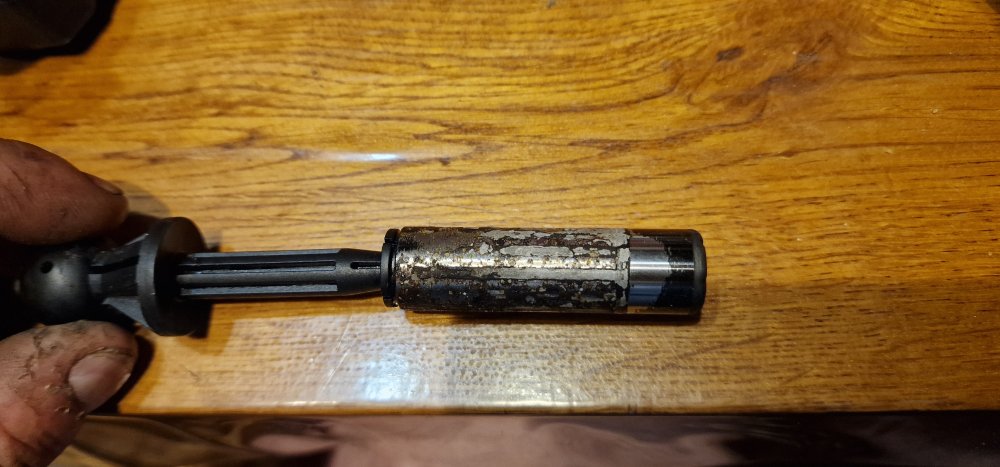 J'ai donc profiter de cette pause pour faire le curieux et faire une autopsie du coupable ... bah c'est pas très joli du tout, le chromage du piston est carrément bouffé ce qui a participé à rayer le corps en plastique