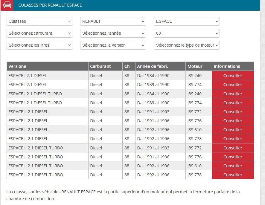 dans ta liste il y a les culasses pour les différentes versions du J8S en atmo et turbo.