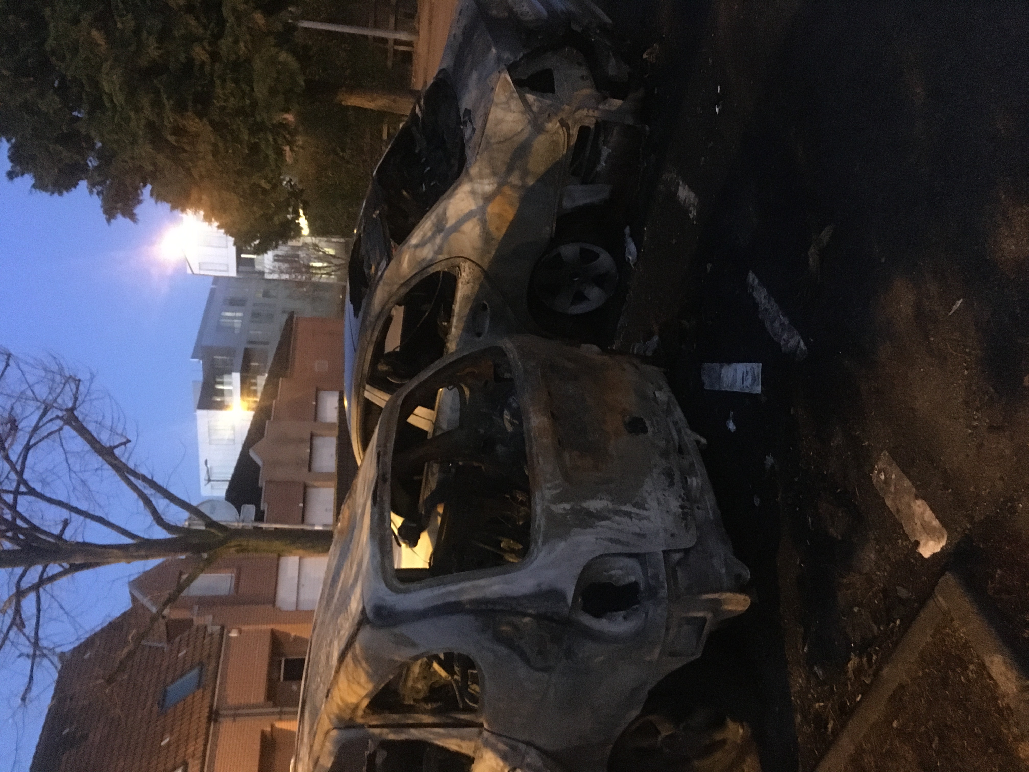 Mon petit frère lui a eu de la chance, j'ai eu le temps de déplacer ça voiture, seul le pneu droit a pris un coup. ( je me suis pris une paire de baffe d'ailleurs !)