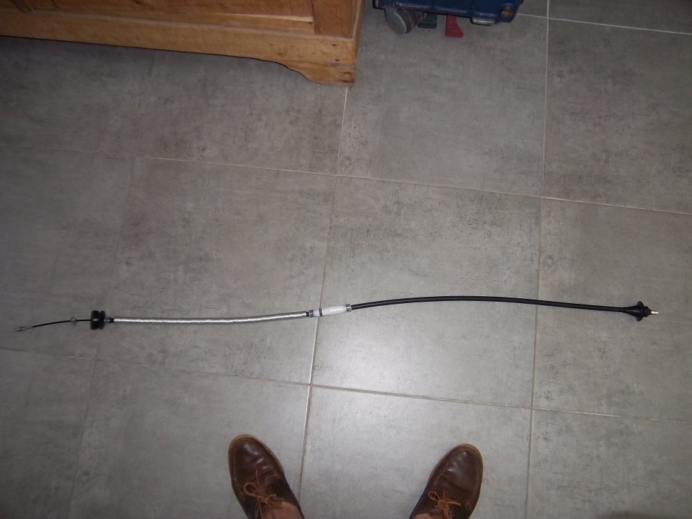 L : 1320mm, avec 2 réglages possibles, l'un à la butée d'embrayage, l'autre au milieu du câble.