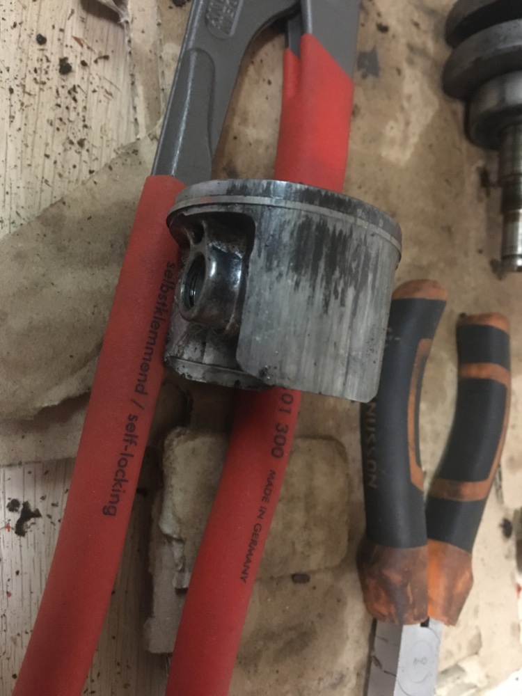 ) et en premier j'ai nettoyé le filetage de l'axe pour voir si je pourrais utiliser l'outil de repose correctement en appui au max sur l'axe... tout rouillé dedans ça m'a pris 2h mais ça rentre à fond!