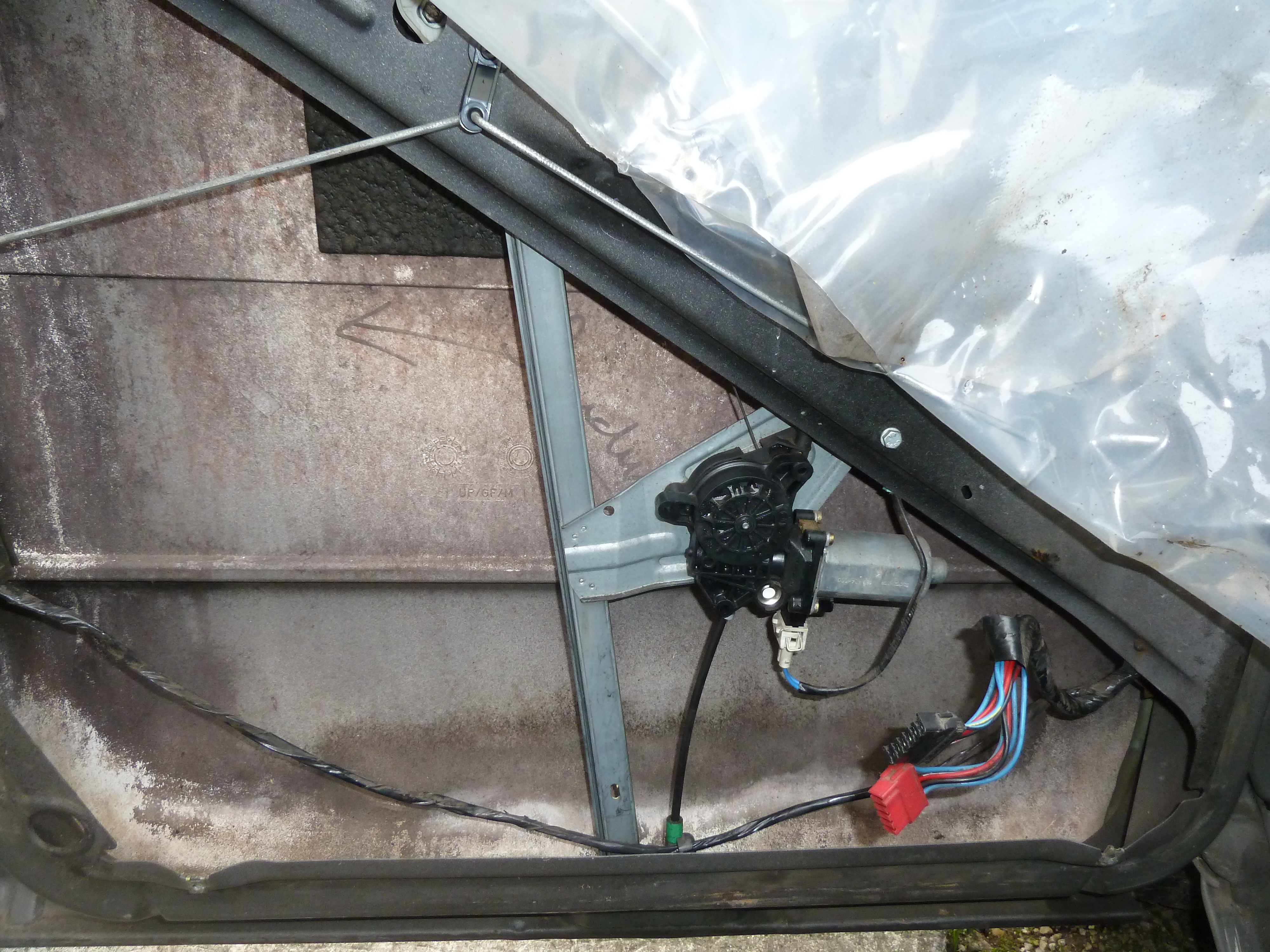 Coté passager, le moteur est fixé sur le haut de la porte, comme dans mon camion blanc!