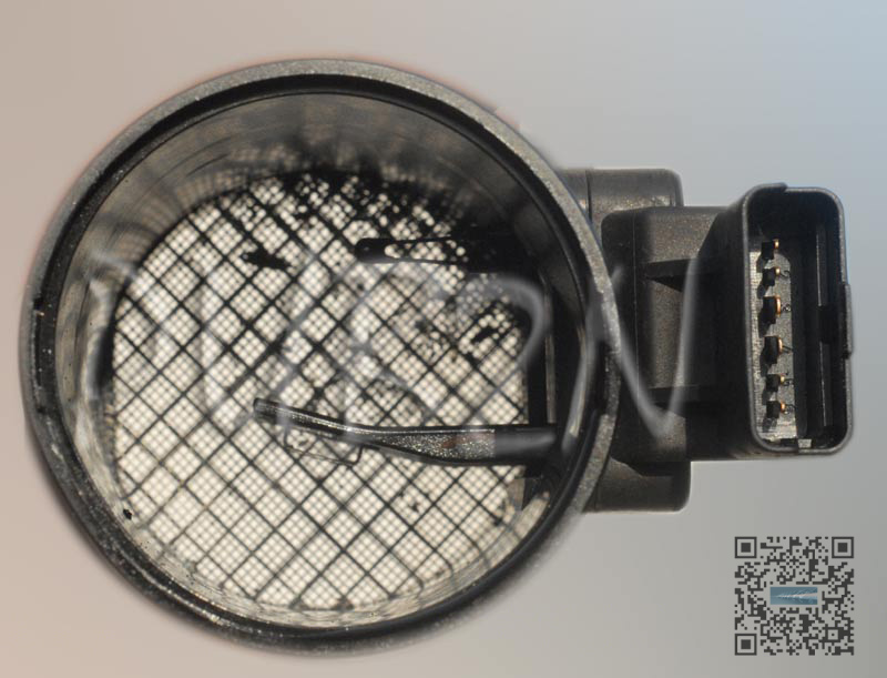 Deux résistances en film métallique, posées sur une membrane en verre et liées à la température, sont disposées dans le flux d’air. La première résistance (RT) est une sonde pyrométrique qui mesure la température de l’air. La deuxième résistance (RS) sert à mesurer le débit de l’air. La résistance RS se refroidit plus ou moins fortement en fonction de la quantité d’air admise. Un courant est envoyé sur la résistance RS afin de maintenir constante la différence de température entre RT et RS. Cette quantité de courant nécessaire au rééquilibre entre RT et RS est convertie en une tension. Cette valeur est utilisée par le calculateur de gestion moteur pour déterminer la quantité de carburant à injecter.