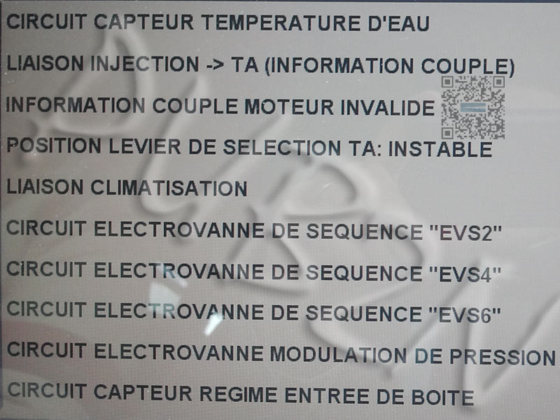 Voici ci dessous les erreurs identifiables par la Valise sur le F4R 2.0 16V du III pour la boite DP0 :