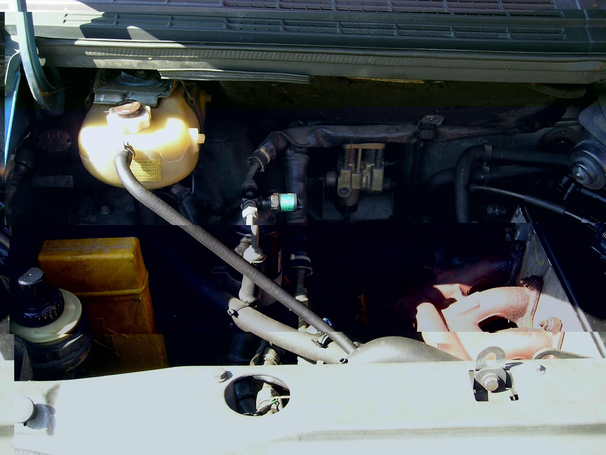 Remarque qu'il y a le boitier des relais de clim et ABS sous le bocal LR et bien ranger entre la batterie et le passage de roue un triangle de signalisation .
