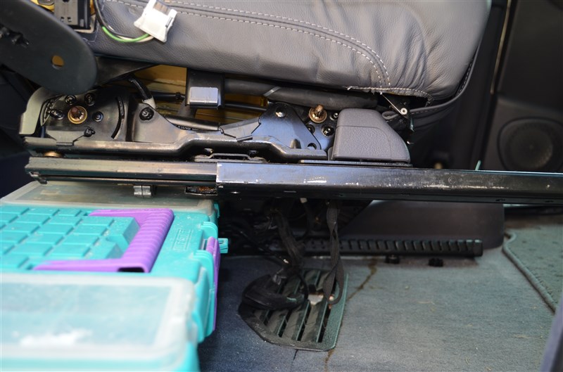 Remarque 1 : après coup, il doit être possible de démonter l'assise du siège sans démonter le siège de ses glissières. Par contre l'accès sous le siège sera plus délicat