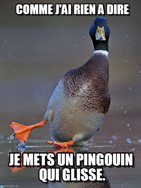 Ça c'est un Panard.... un Pingouin déguisé en cANARD :lol: À ne part confondre avec le Tanard, qui lui fait Toin Toin au lieu de Coin Coin :mrgreen: