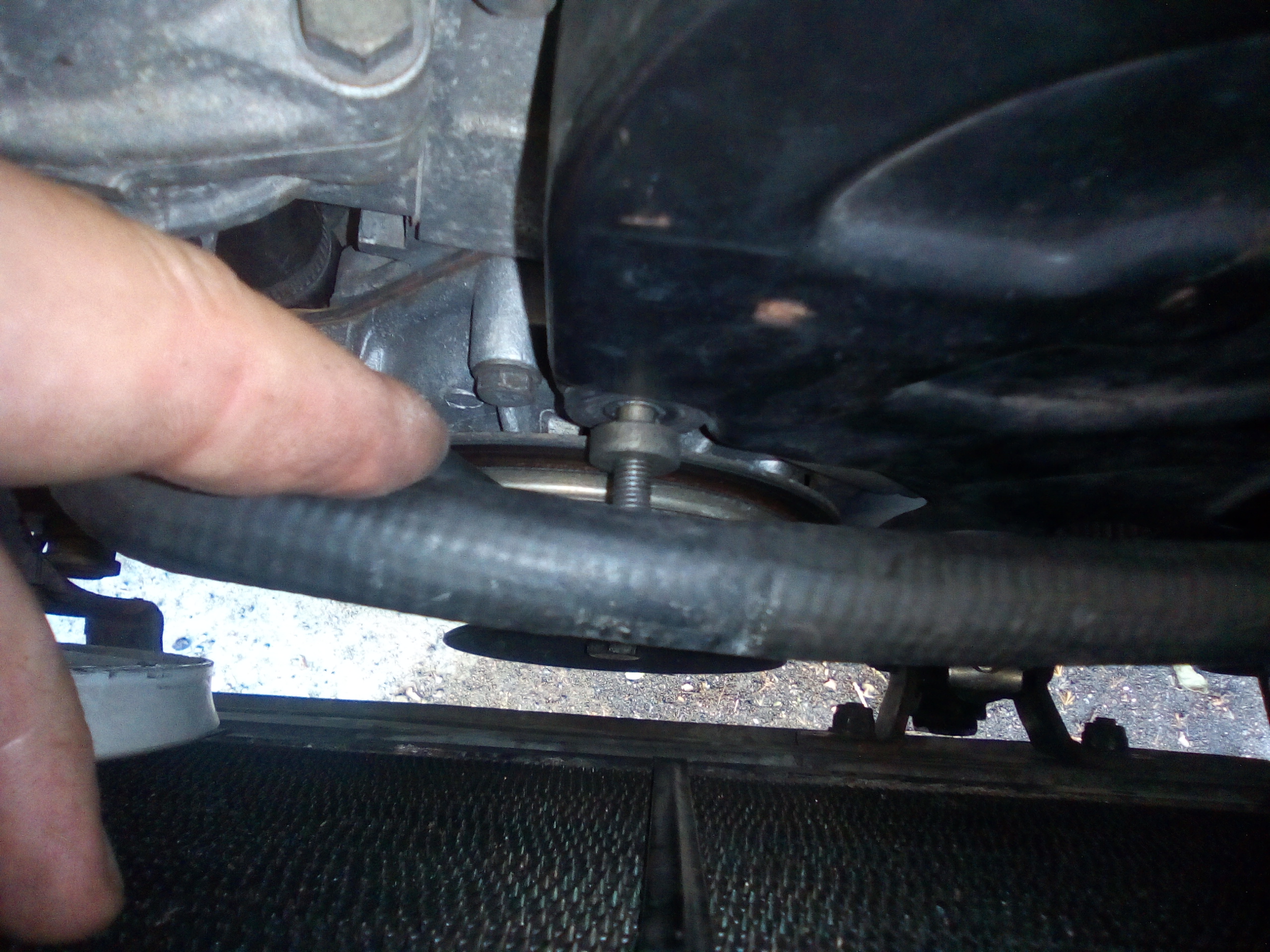 Puisque je parle de ça: Impossible de déposer l'ancienne courroie; ça coinçait au niveau de la fixation en haut à gauche du carter de distrib ( un écrou, une rondelle éventail et une entretoise sur un goujon). Pour les défaire, j'ai dû démonter la traverse supérieure, la calandre et tirer le radiateur vers l'avant!