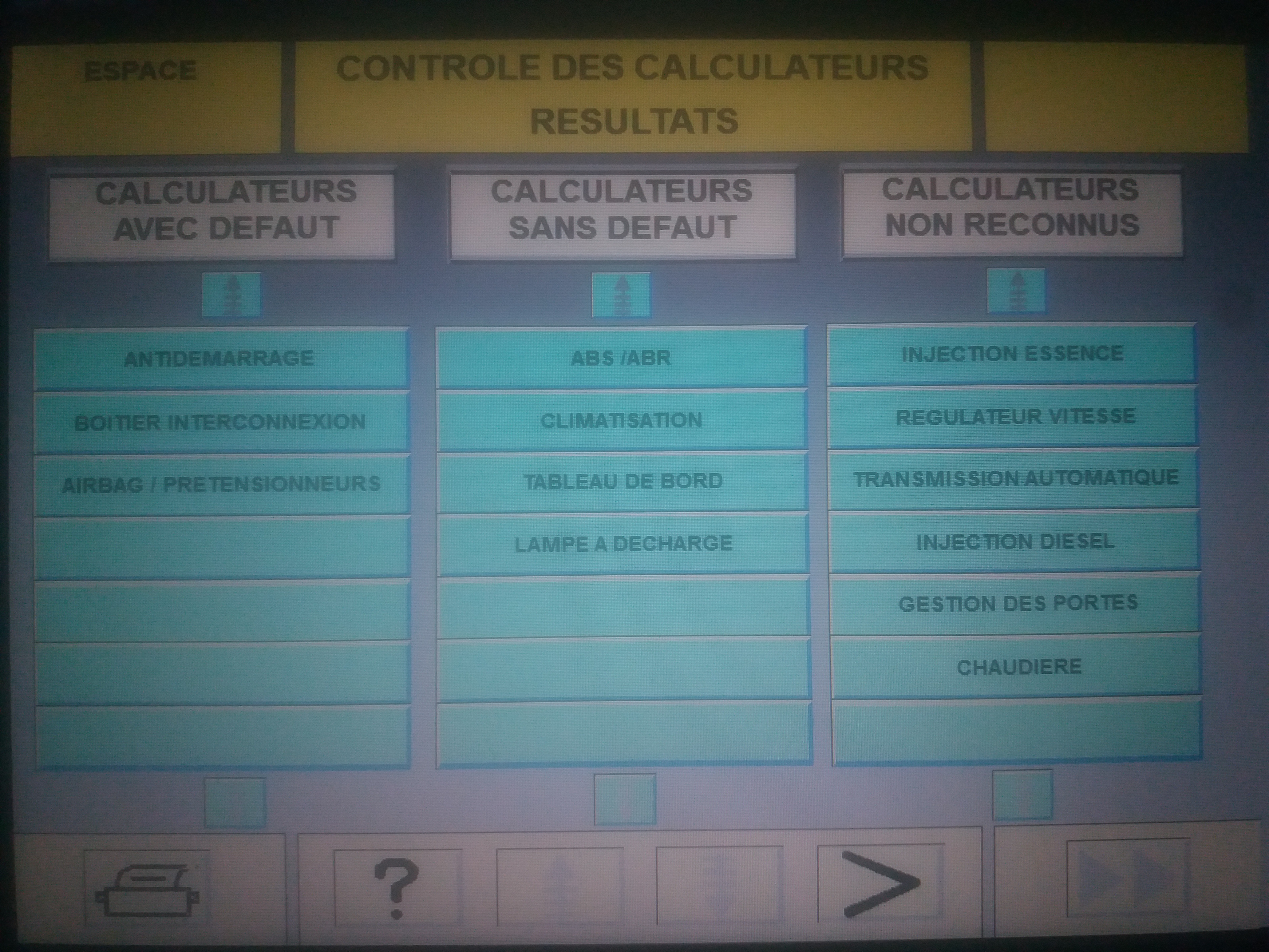 - sur l'espace 4, lire tous les defauts et retirer ceux que je vais régler comme la vidange ou le défaut frein de parking.